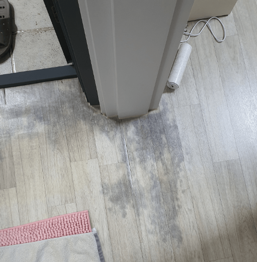 욕실 앞에 물이 새 장판색이 변해있었습니다.