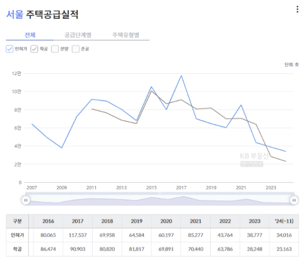 대개 인허가 시점부터 3~4년 후 입주 물량이 시장에 나온다는 것이다. 2022년과 2023년 인허가 시점부터 3~4년 후 입주 물량이 시장에 나온다는 것이다. 2022년과 2023년 인허가 물량이 시장이 적다면 2025~2026년 이후 서울시 아파트 입주 물량이 심각하게 줄어들 것은 너무나 명약관화하다."