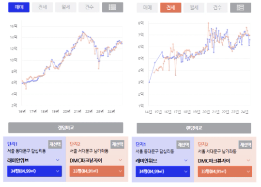 -> 입지는 서쪽보다 동쪽이 좋은데 그렇다면 비슷한 흐름을 가고 있었던 단지들 중에서 서쪽 단지가 희소성에 의해서 더 가격이 상승할 것인지 표본을 잘 선정해서 비교해야겠다.
