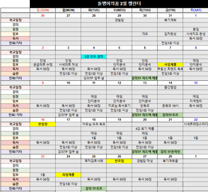 2월은 모든 평일에 최대한 다 전임을 하는 것을