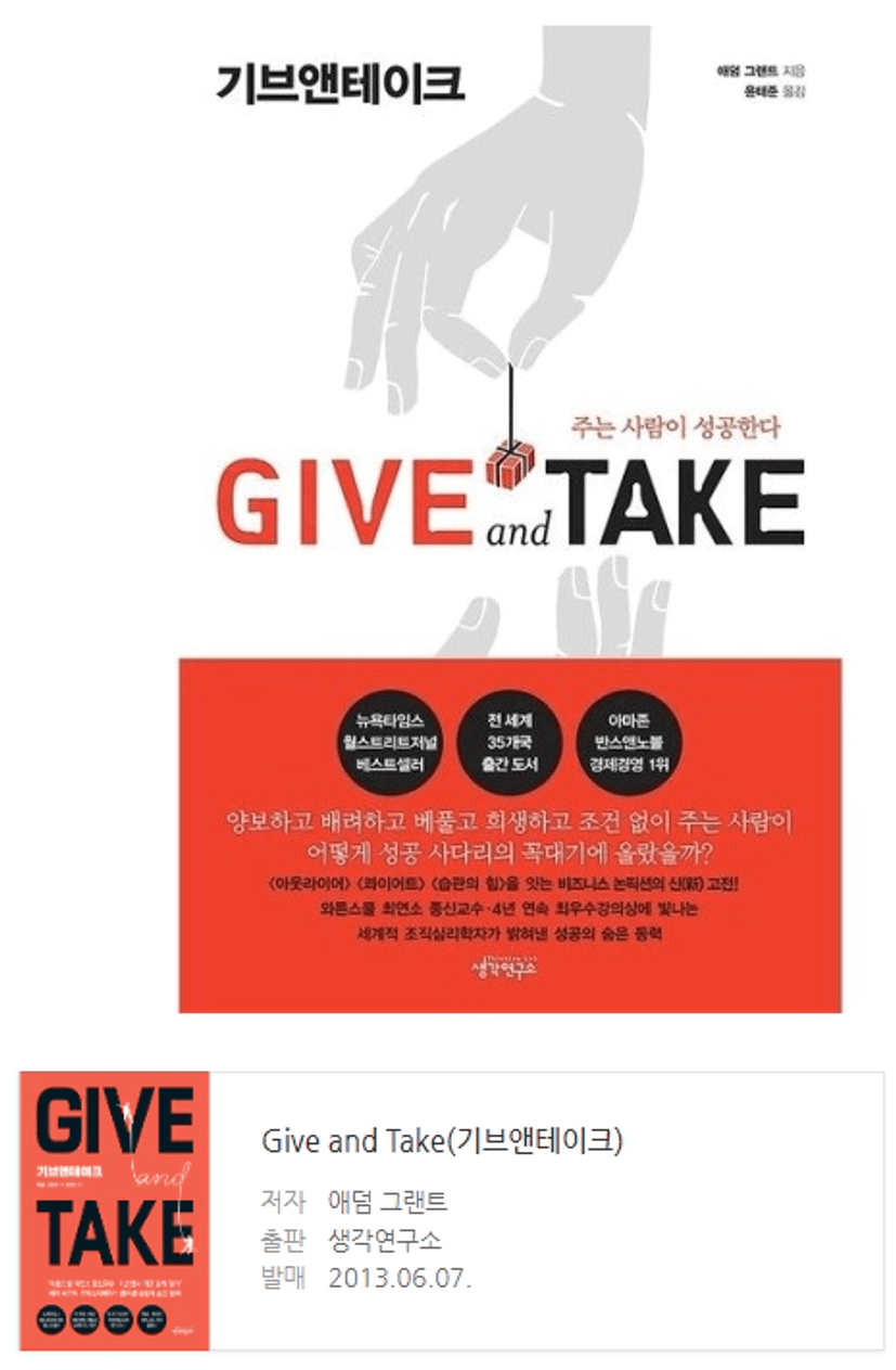 '기브앤테이크' 독서 후기 [투자! 나눔! 8방미인 경험여정TF 성공루틴]