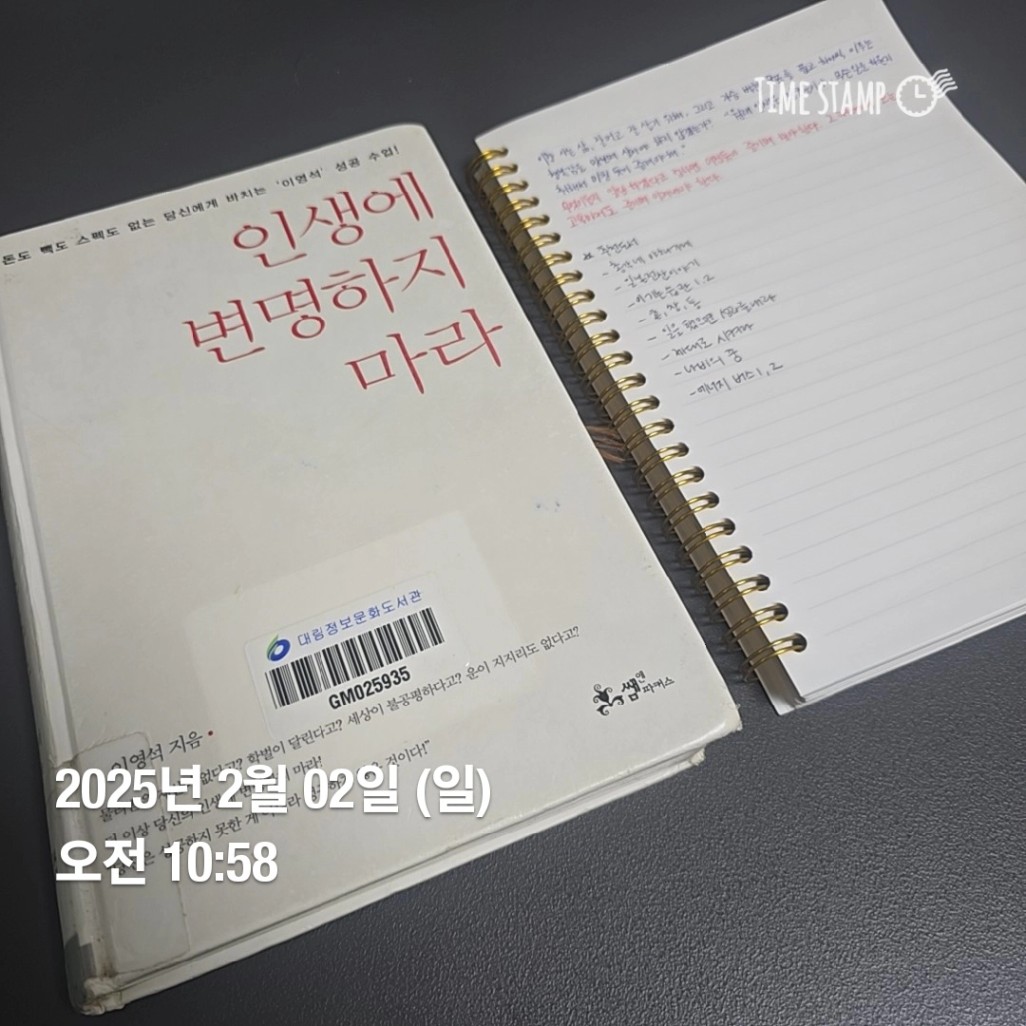 [2025 숑숑숑앤지 독서기록 #2] 인생에 변명하지 마라