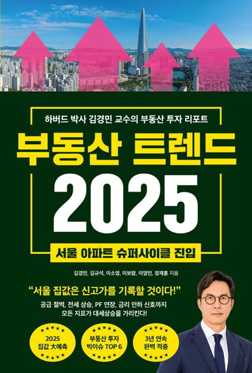 매년 빅데이터 분석을 근거로 서울시 집값 예상치와 당해의 투자 이슈를 짚어주는 ≪부동산 트렌드≫ 시리즈가 2025년 부동산 시장을 전격 해부한다. 2024년 현재, 각종 매체에는 상승장이 왔으니 ‘영끌’해서라도 집을 마련해야 한다는 의견과, 부동산 시장이 붕괴될 것이니 있는 집도 팔라는 의견이 뒤섞여 있다. 상반된 주장에 혼란스러운 투자자들은 정확한 데이터와 균형 있는 의견을 제시해줄 전문가를 절실히 찾고 있다. 이에 김경민 서울대 교수는 “서울 부동산은 2021년도의 전 고점을 넘어 신고가를 기록할 것”이라며 확실한 ‘상승’ 방향을 예고한다. 역대 최악의 공급 부족과 금리 인하 신호, PF 문제 연장, 전셋값 폭등 등 시장의 모든 지표가 가격을 밀어 올릴 준비를 갖췄기 때문이다. 심지어 강남 부동산은 이미 슈퍼사이클 진입을 완료했다.