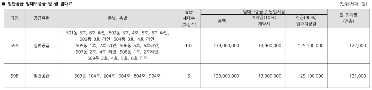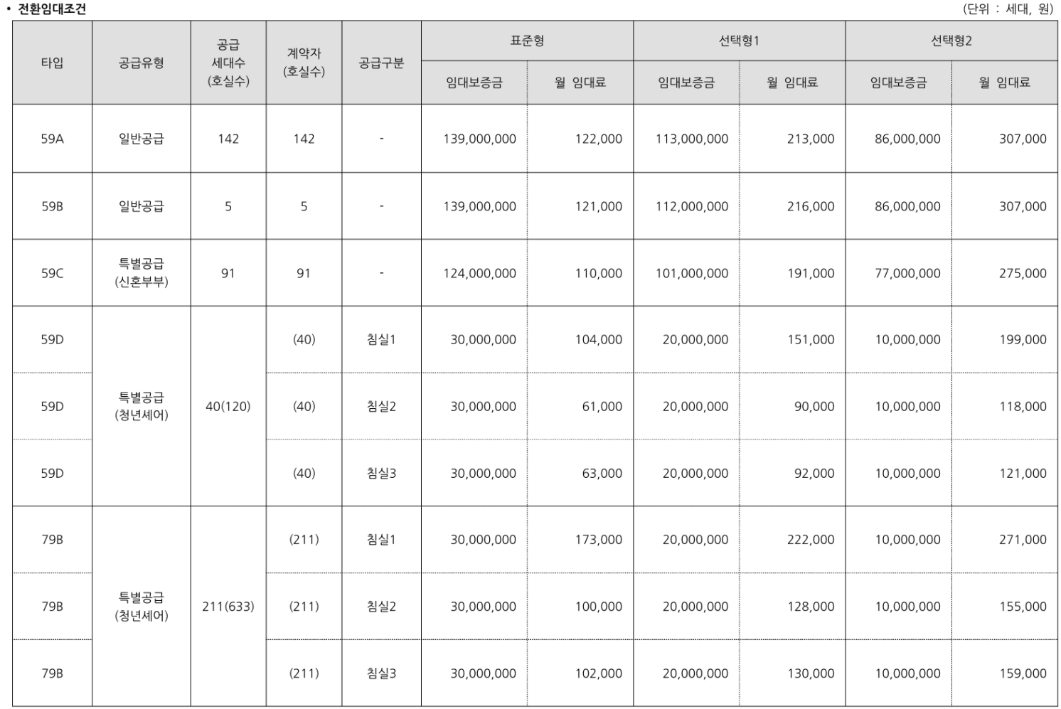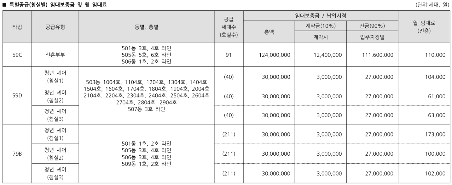 특별공급의 경우 임대보증금 + 월 임대료로 되어있어