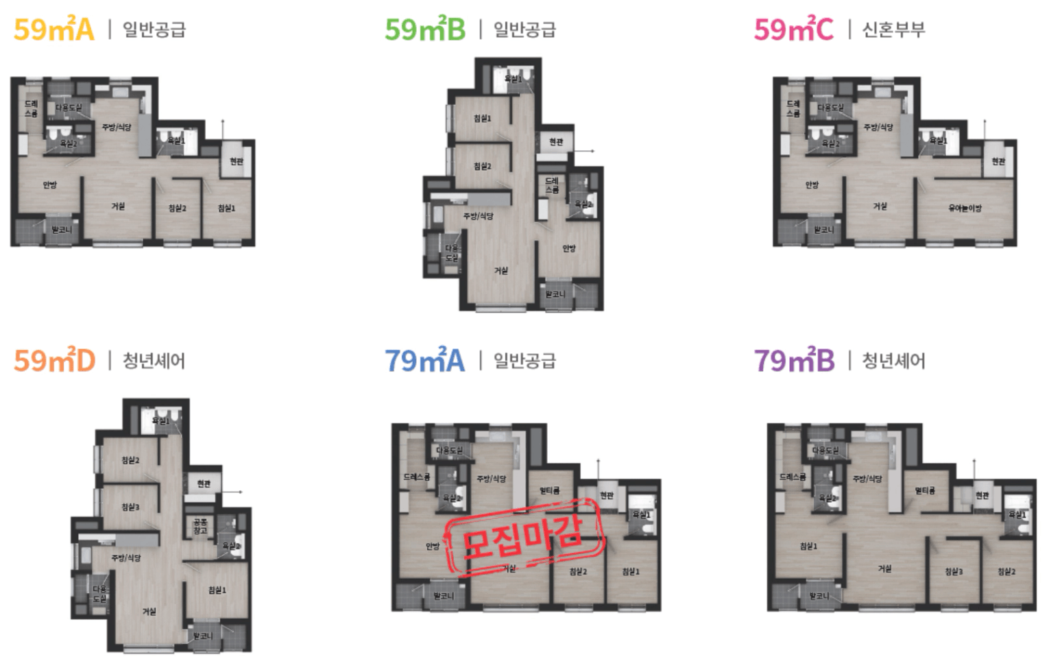 일반공급, 신혼부부특공, 청년셰어에 따라