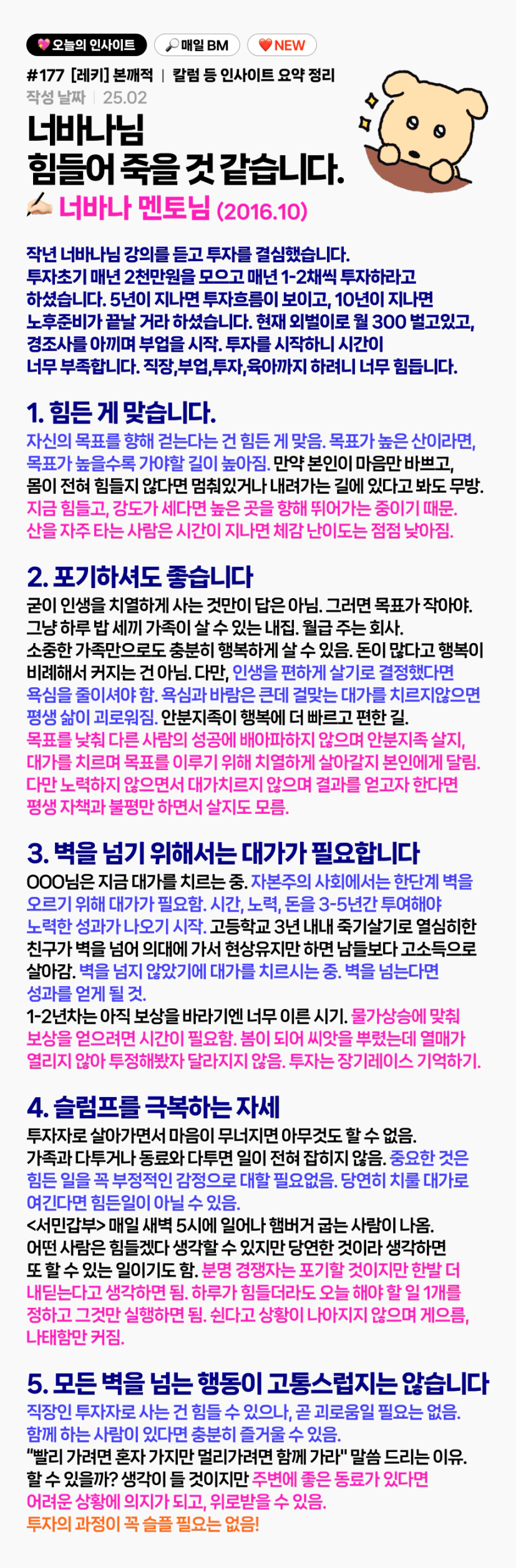 제목부터 마음을 탁 치네요 허허 마음이 지치고 힘들 때 꼭꼭 챙겨보고 싶은 칼럼 소개해주셔서 감사해여 레키님💛