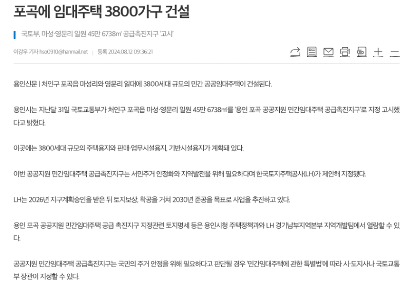앞마당 중 처인구가 있는데 마성,영문리 일대도 3년전부터 LH매입이 이뤄지는 것을 확인했고 LH가 공원공사를 하는 것을 보면서 언제 조성이 되려나 했는데… 기사 찾아보니 30년 준공 목표네??