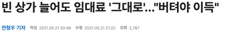 이러한 낮은 요식업 생존율에 홍대, 강남역 일대는 지난 3년간 15~20%대 수준의 공실률이 유지되었다.  이렇게 높은 공실률에도 건물주들은 임대료를 낮춰 임차인을 찾기보다는 차라리 상가를 비워두는 방식으로 건물 가치를 유지하고 있다.