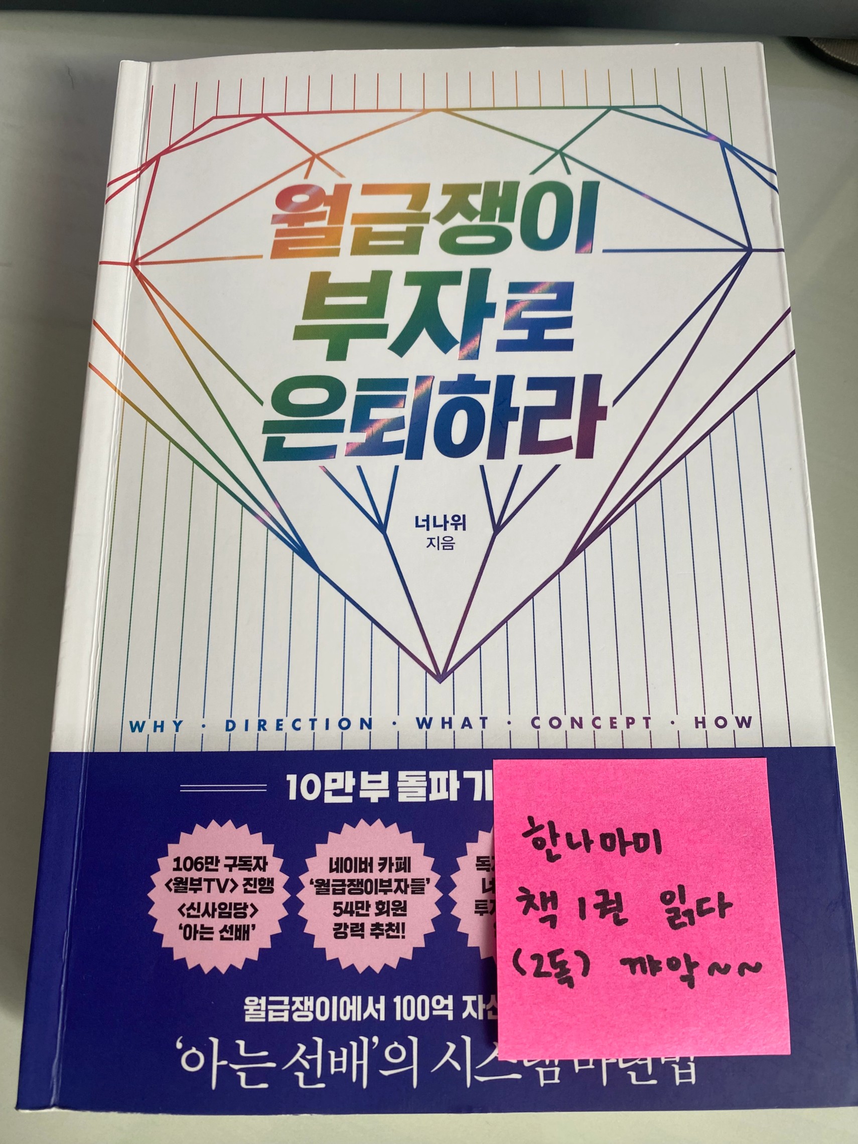 나의 첫 부동산 책은 ‘월급쟁이 부자로 은퇴하라’ 이다. 내가 처음 강의를 들은 것도 너나위 강사님의 강의 ‘너나위의 NEW 부동산으로 부자되는 공식’ 이라는 것이 였다. 그렇게 나의 월부생활은 2024년 09월 부터 시작되었다.