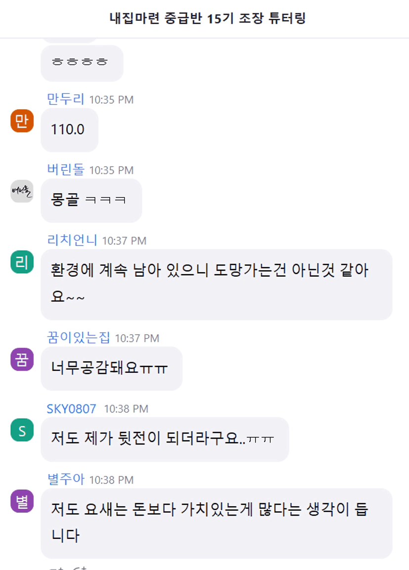 튜터님도 힘든 순간이 많았다고 터놓으셨어요.