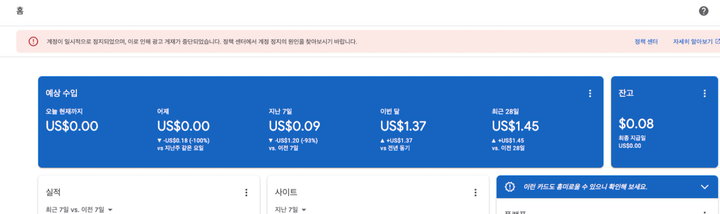 물론 중간에 사고를 한 번 쳐서(제 블로그 광고 스스로 클릭 ㅠㅠㅠㅠ)