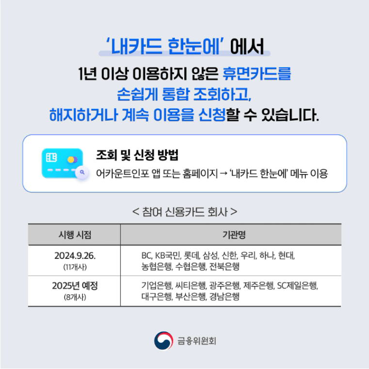 #휴면카드 #미사용신용카드 #어카운트인포 #금융결제원 #휴면카드해지 #미사용신용카드관리 #미사용신용카드조회