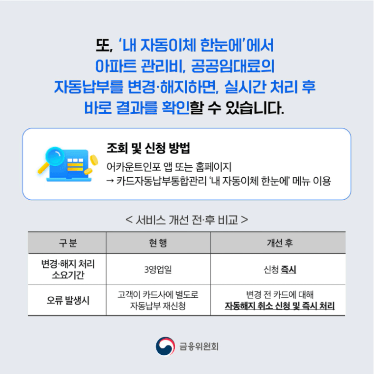 변경된 카드로 자동결제 시작시점도 알 수 있어 미납우려는 없겠어요!