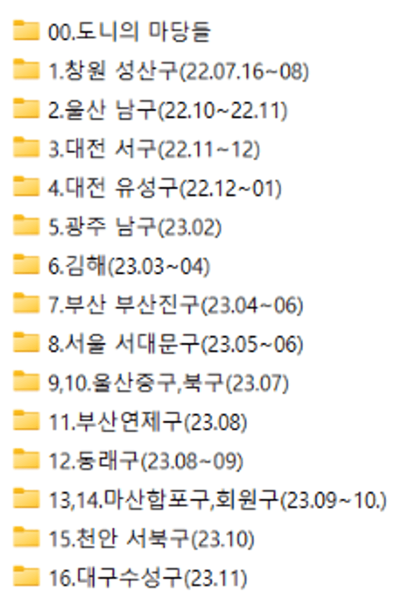 16개의 아는 지역을 만들고