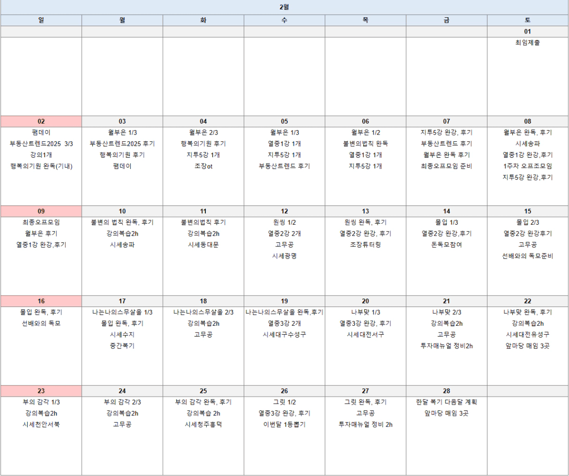 중간복기를 해보며 개선할 부분을 적용하여 남은 2월을 더 충실하게