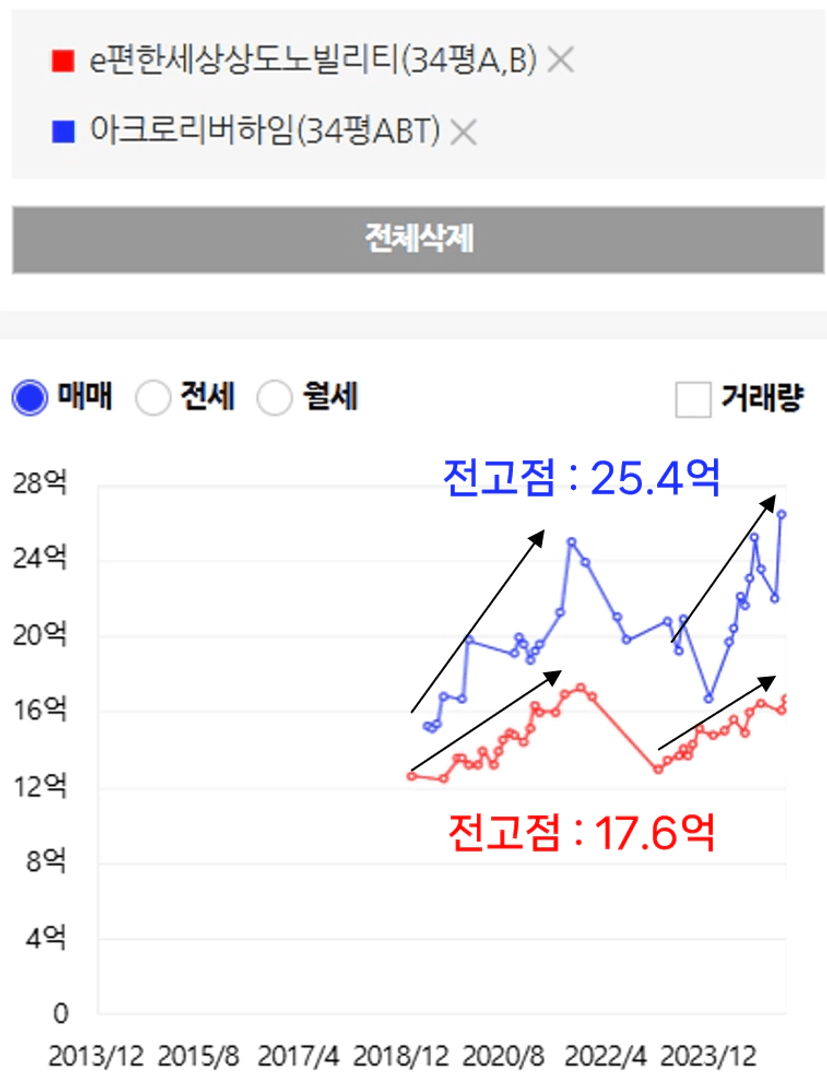 무려 7.8억의 가격 격차가 벌어졌습니다.