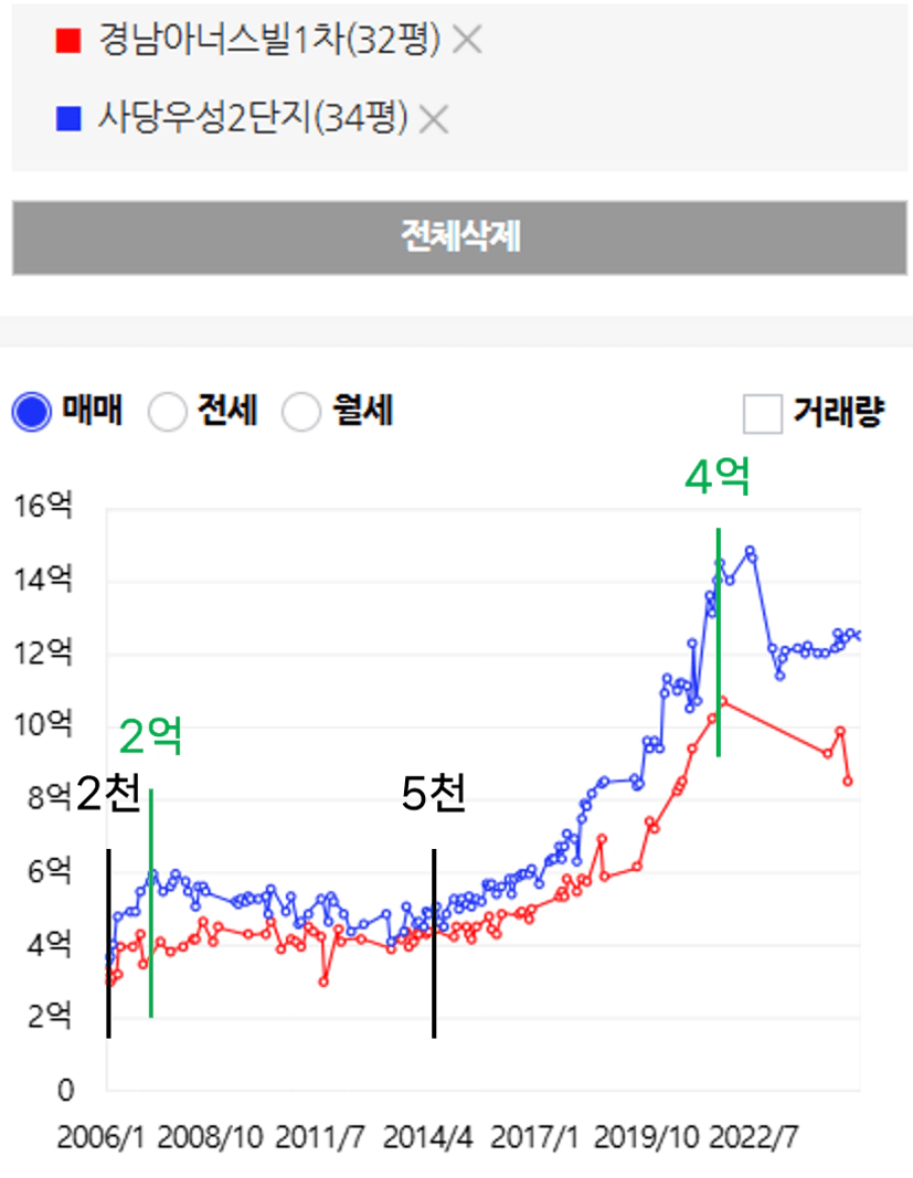 두 단지는 7억대의 비슷한 분양가로 시작해서