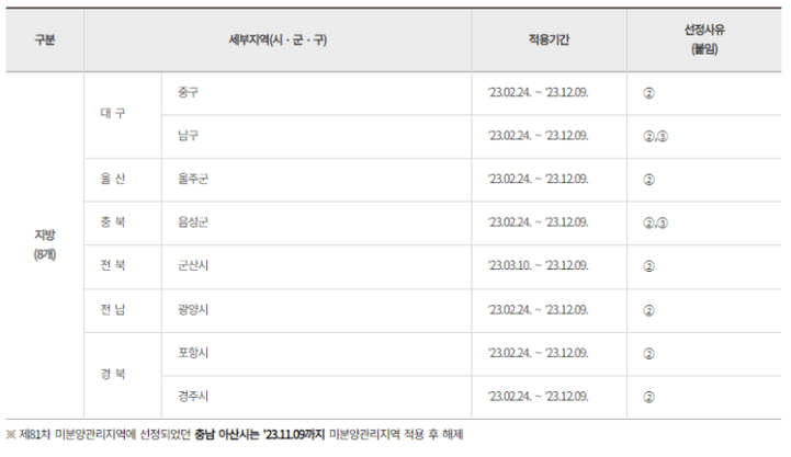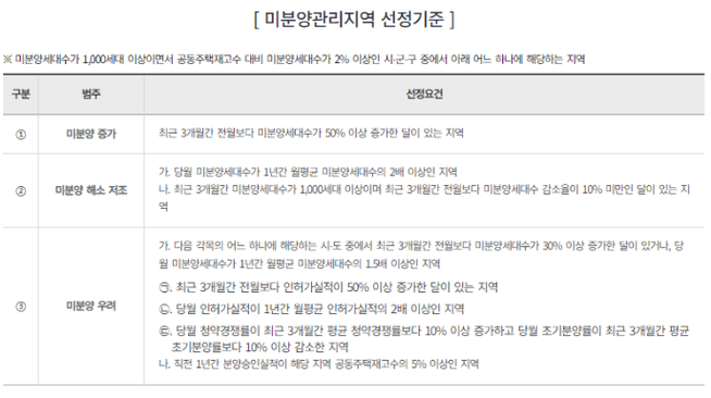 선정사유는 ②번표기로 '미분양해소저조'사유이네요.