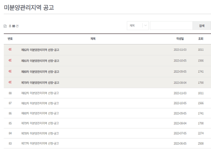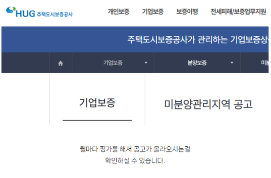 기업보증>미분양관리지역 공고 게시판으로들어가시면