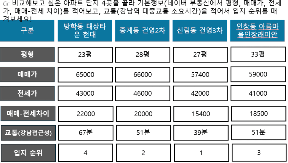 임장으로 교통 편의성과 실매물을 확인하는 것이 중요하다는 것을 느꼈고,