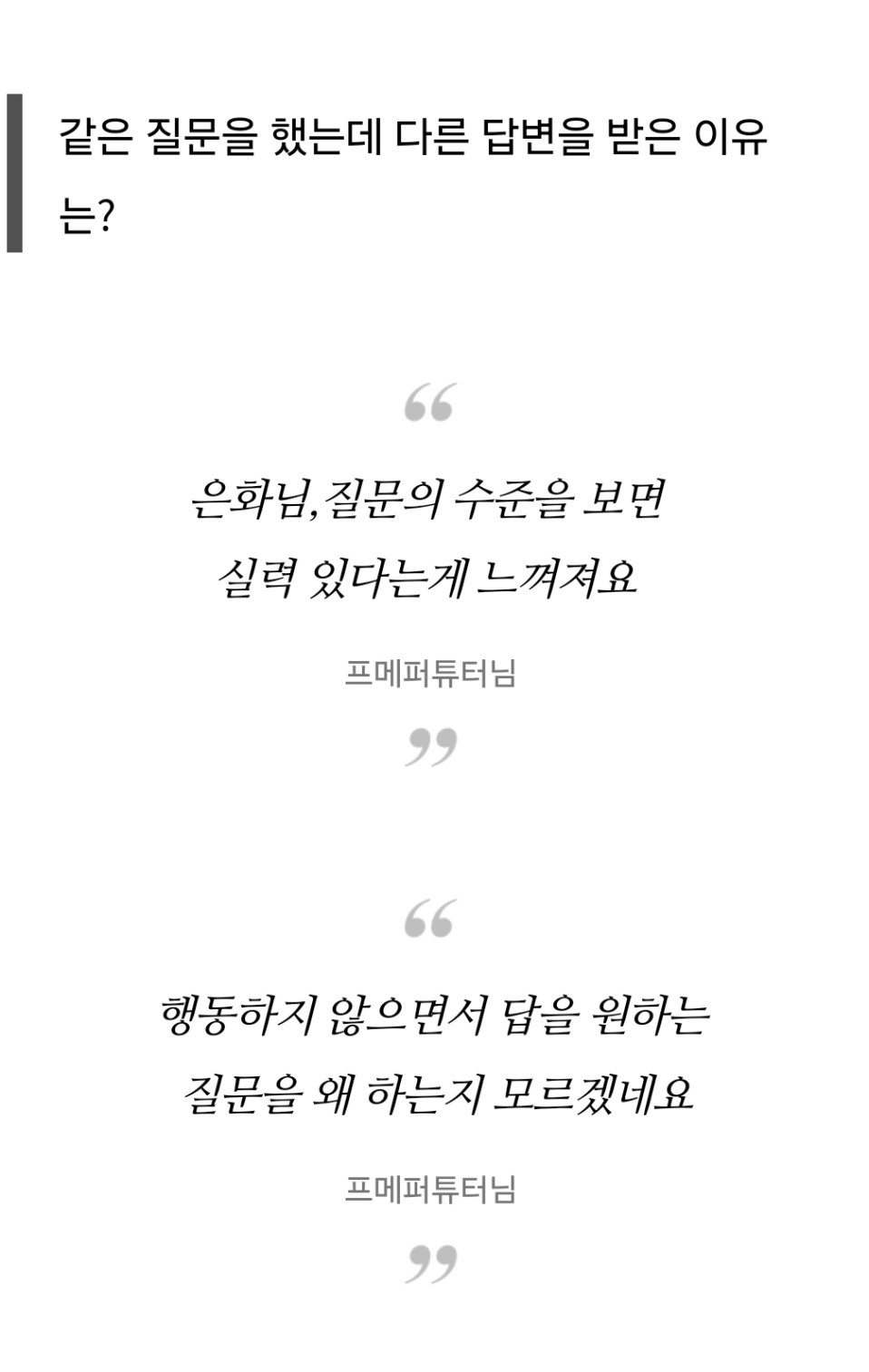 과정에서 나온 질문은 명확하고 ,디테일합니다