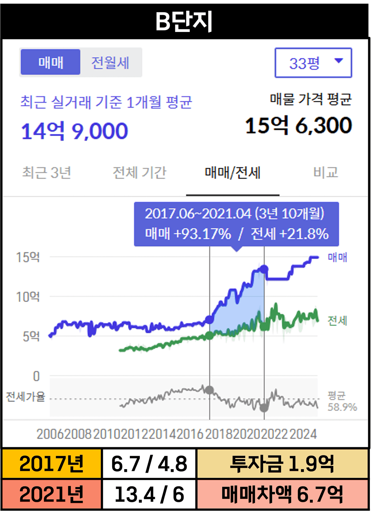 단지 B를 저평가시기에 투자했다면