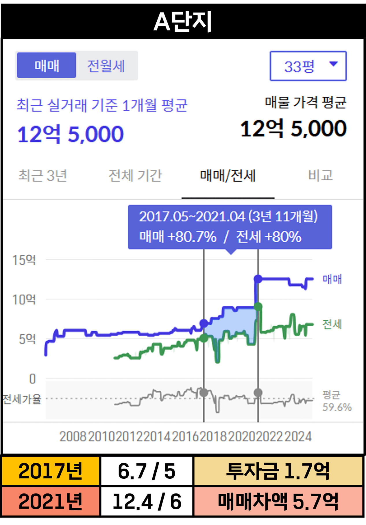 단지 A를 저평가시기에 투자했다면