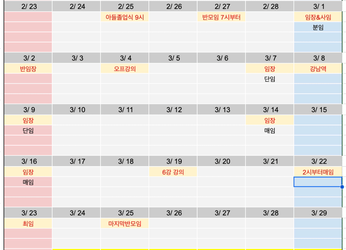 2/4 학교 3강 오프라인강의 - 강의 끝나고 쓸 수 있는 반원분들과 바로 후기작성