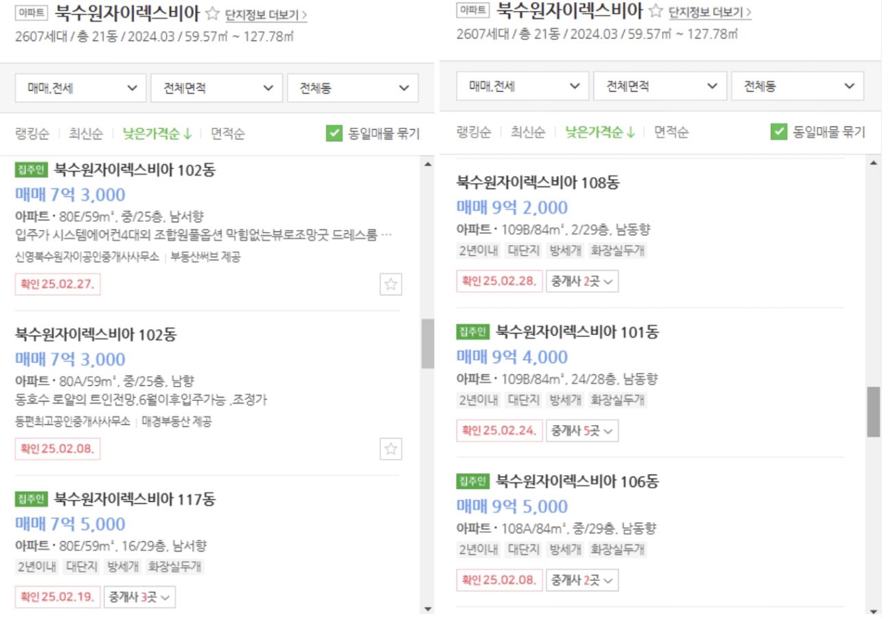 보수적으로 59타입 실거래가 7억정도, 84타입 9억정도로 보고
