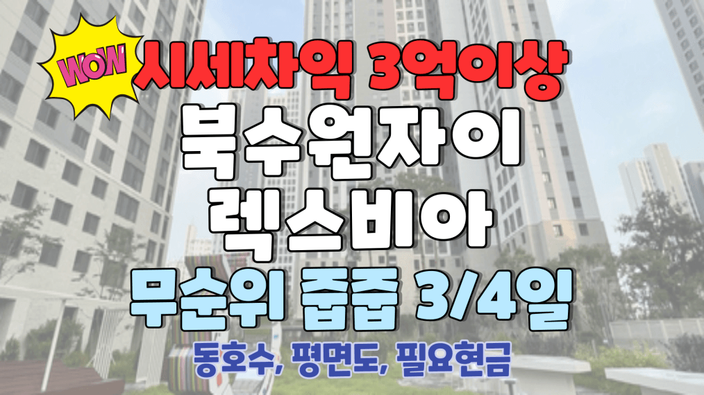 북수원자이 렉스비아 무순위청약 정보를 가지고 왔습니다!