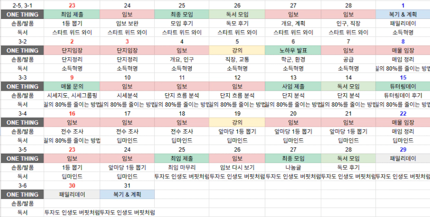 - 투자 시간 : 중요하고 시급한 일들을 하느라..ㅎㅎ 또 정신없이 시간이 갔던 것 같습니다. 시간 관리는 늘.. 어려운 일..!