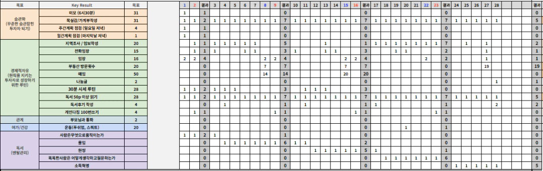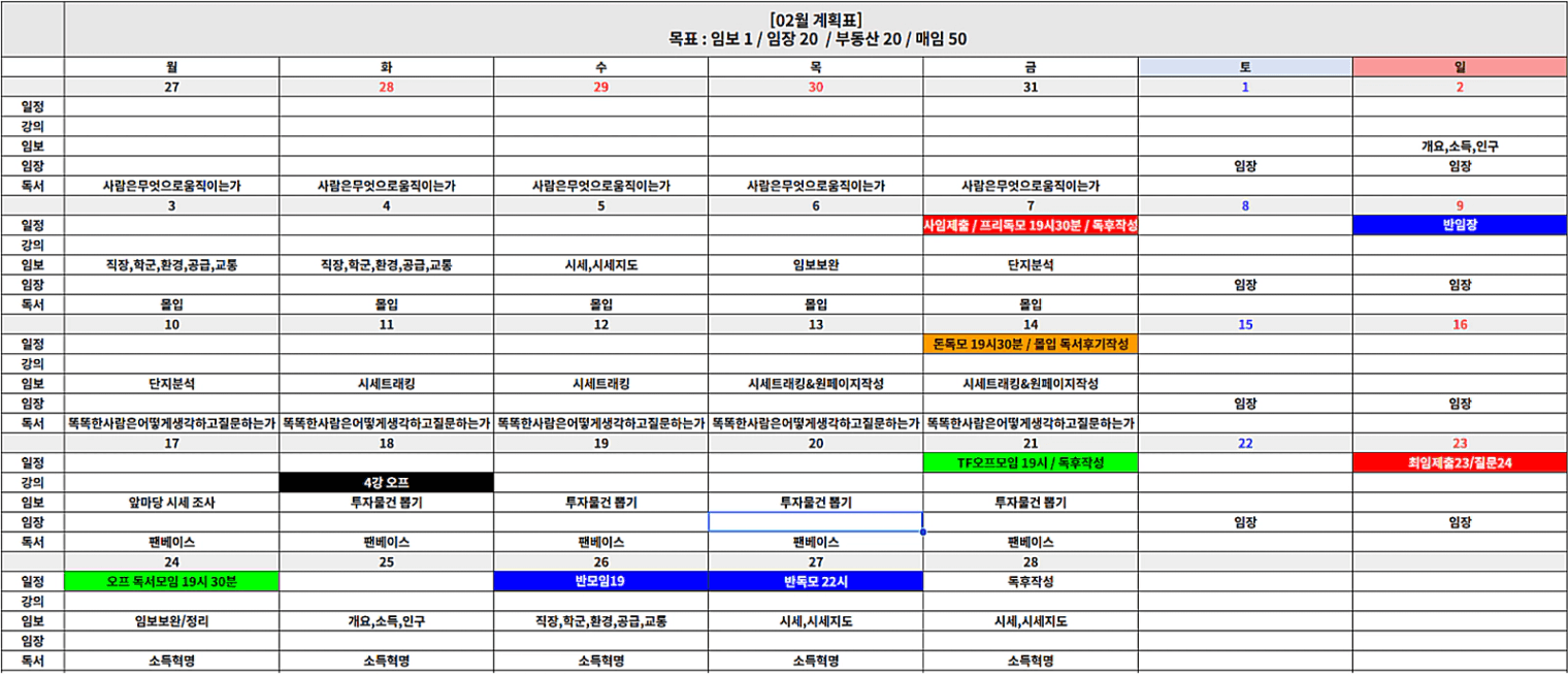 목표: 임보 1 / 임장 16/ 부동산 20 / 매임 50
