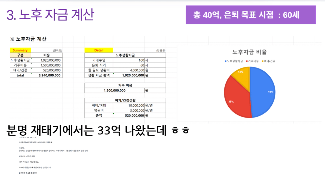 필요한 노후 자금 합계 ▶ 총 40억 원