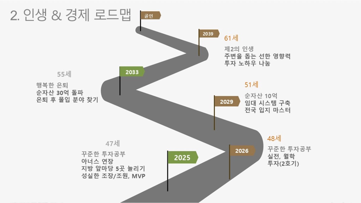 비전보드 실현을 위해 5년 단위로 20년 계획을 세워봅시다. (2025/ 2030/ 2035/ 2040/ 2045년)
