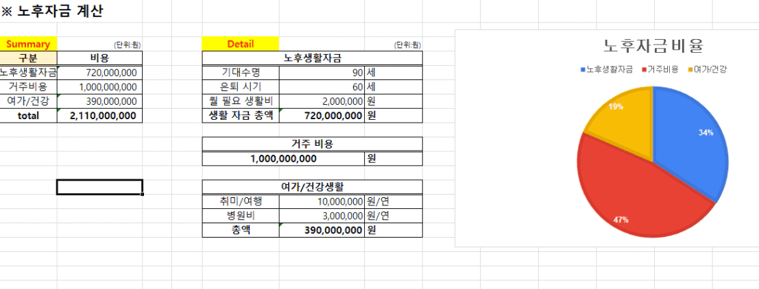 - 생활비 월 450만원(공무원 연금:250만원 수령,투자를 통해 마련:200만원)