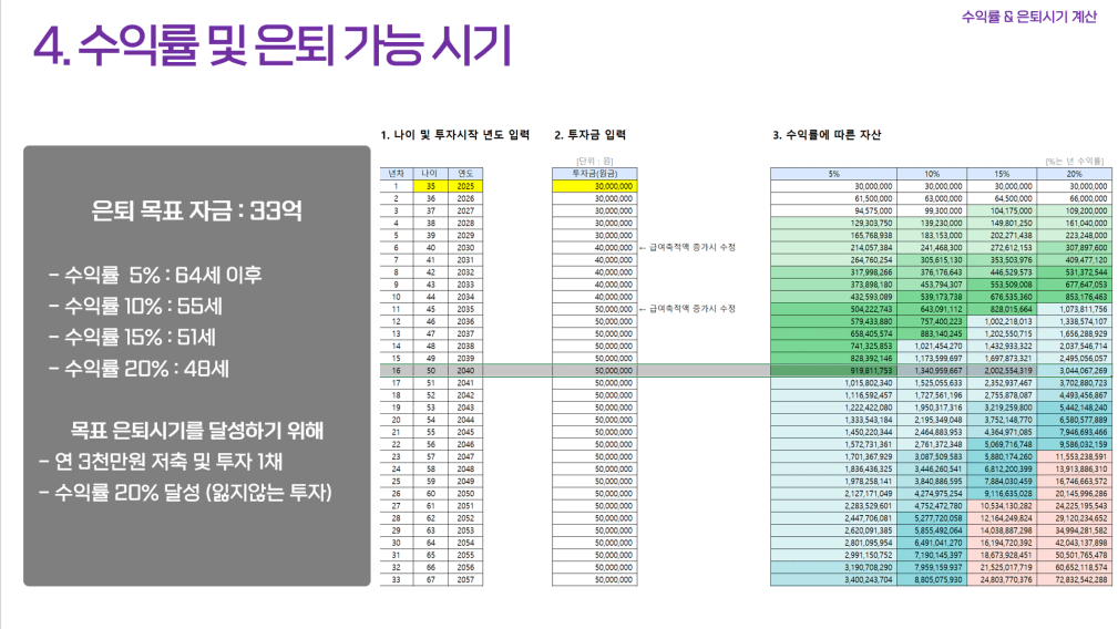 STEP4. 수익률에 따른 은퇴 가능 나이
