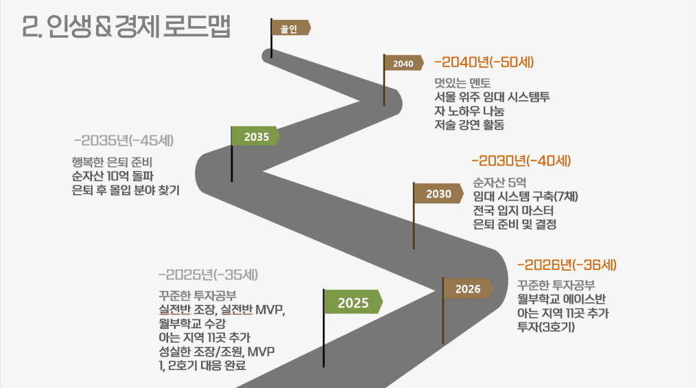 비전보드 실현을 위해 5년 단위로 20년 계획을 세워봅시다. (2025/ 2030/ 2035/ 2040/ 2045년)