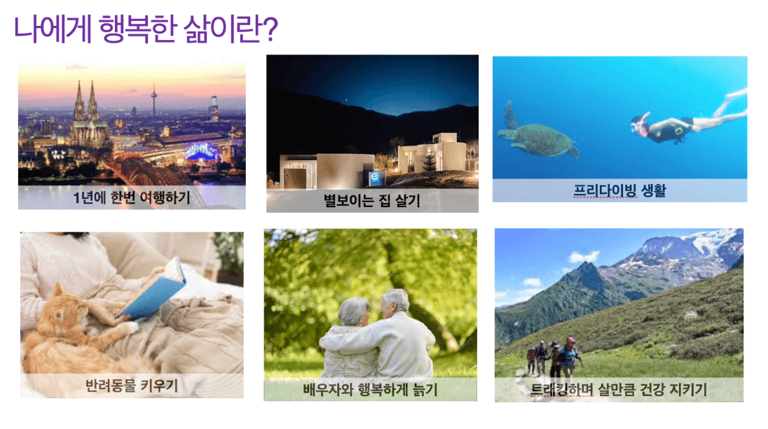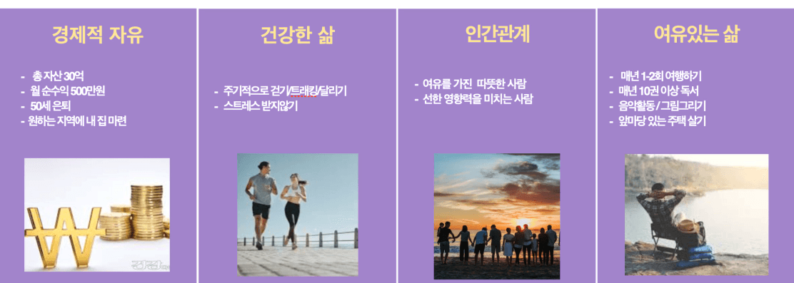 - 인간관계: 월1회 가족들과 나들이, 감사일기 작성