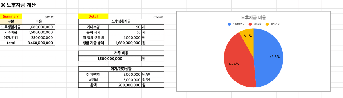 필요한 노후 자금 합계 ▶ 총 34억 6천 만원