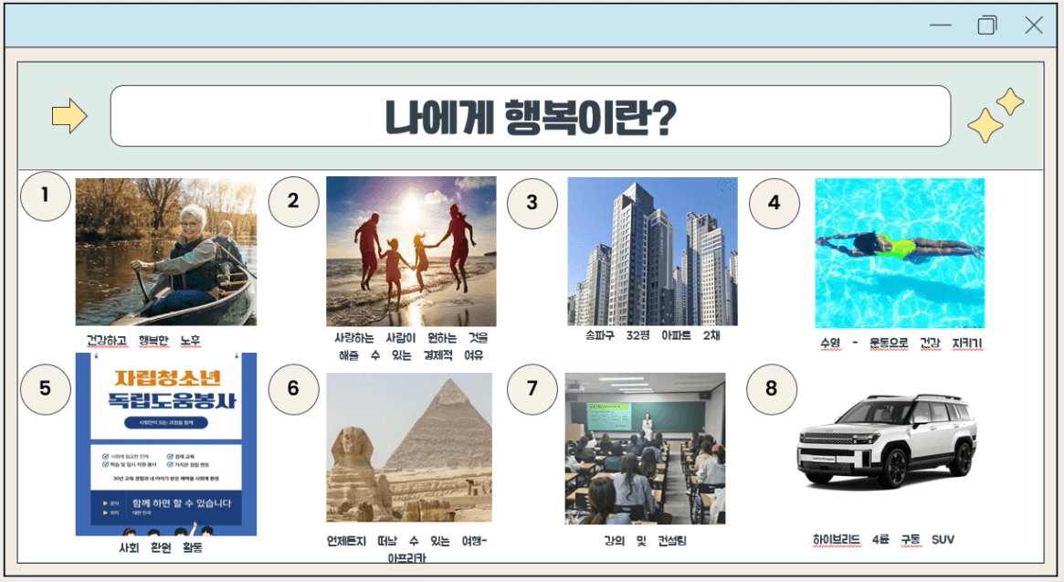 내가 이루고 싶은 목표를 나타내는 이미지를 찾아서 올려보세요.