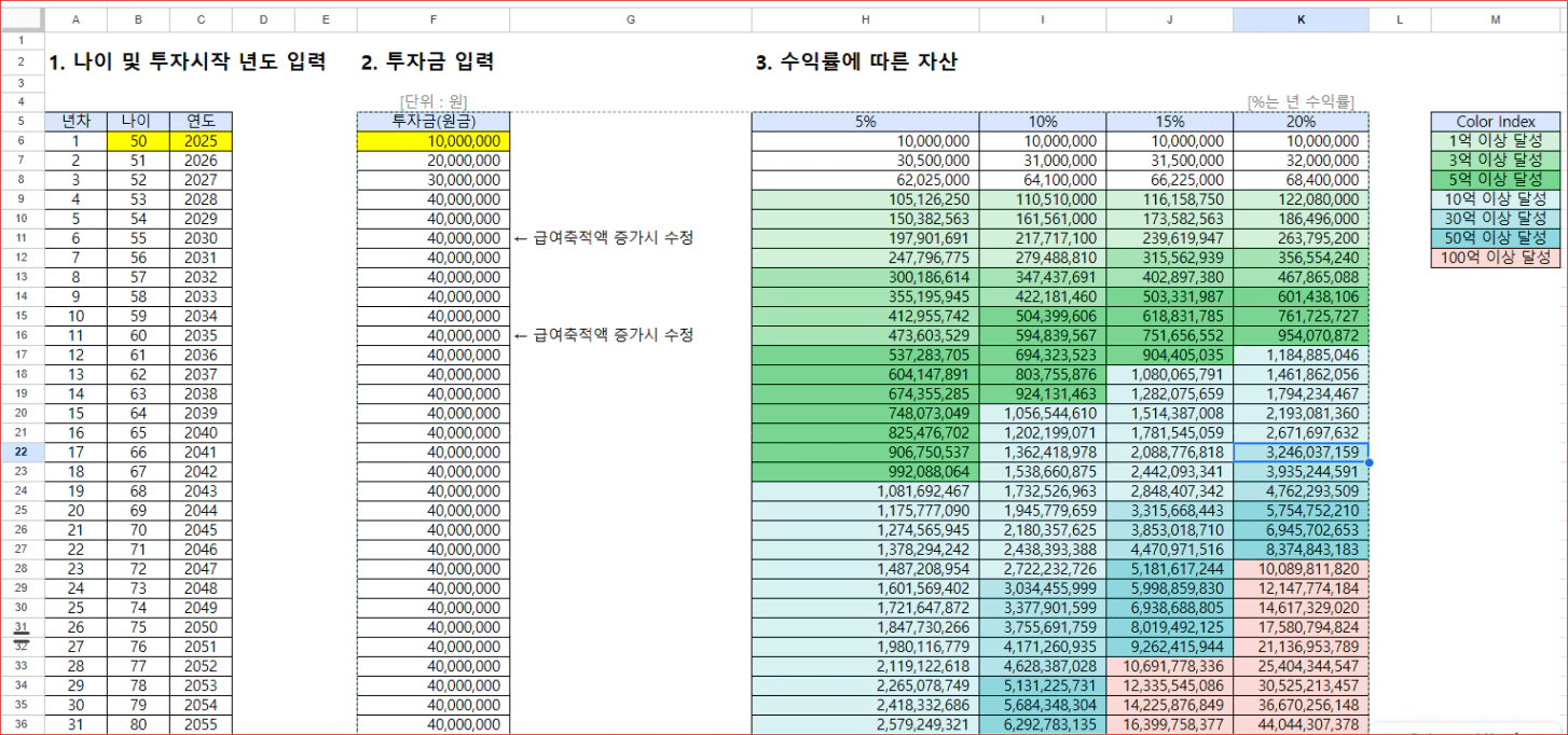 STEP4. 수익률에 따른 은퇴 가능 나이