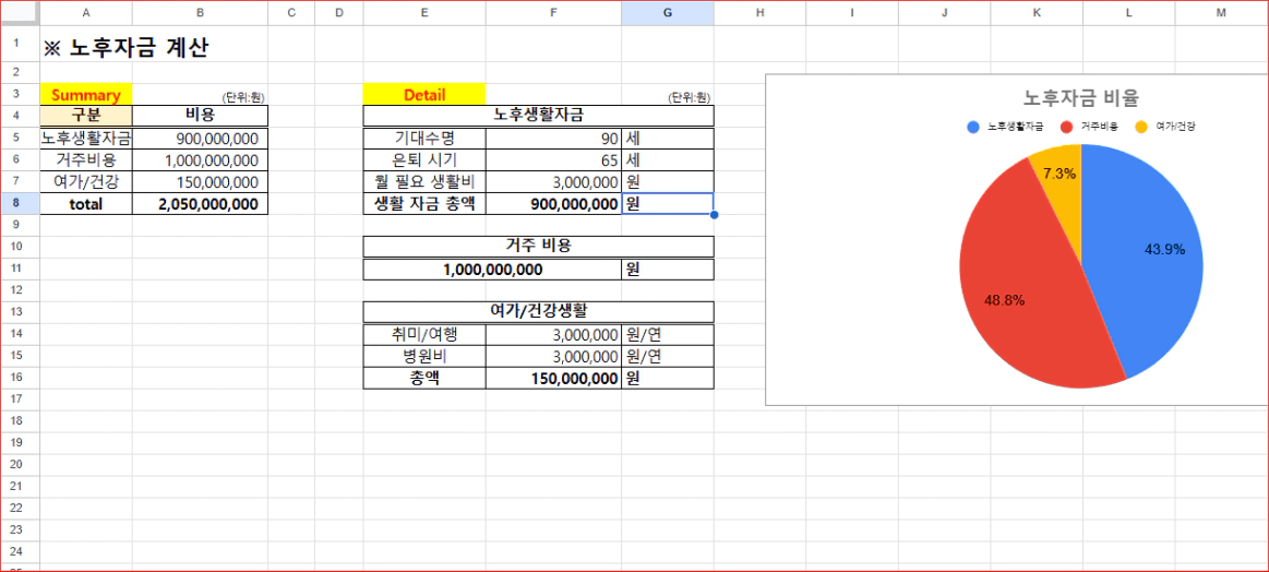 필요한 노후 자금 합계 ▶ 총 20억 5천 만원