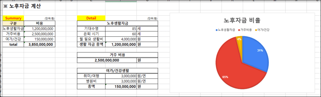 꿈을 실현하기 위해 필요한 노후 자금은 얼마인지 예산을 계산해보세요.