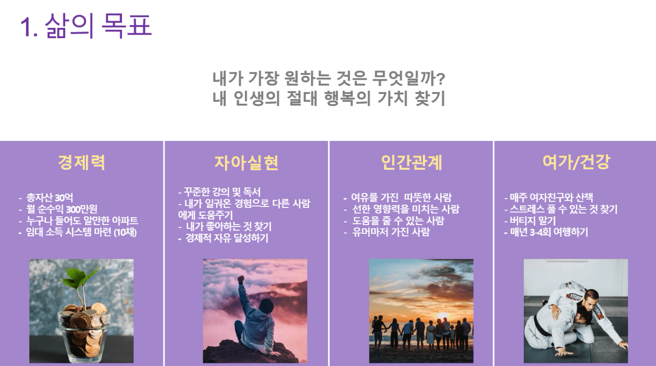 열반스쿨 기초반 1주차 과제 '비전보드' 예시