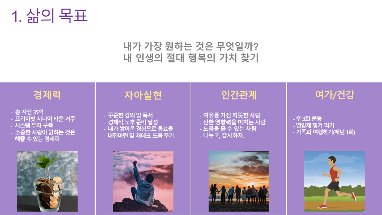 저의 노후를 어떻게 보낼 것인가에 대한 것을 좀 구체적으로 생각해볼 수 있는 시간이었습니다.