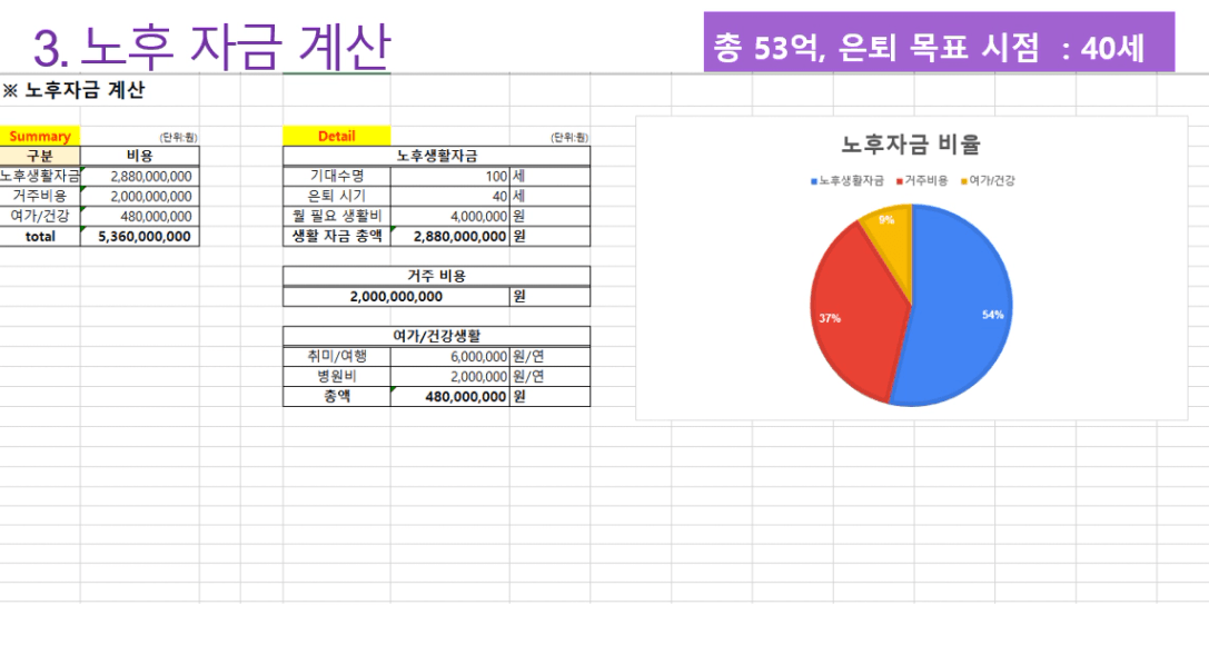 필요한 노후 자금 합계 ▶ 총 41억 6천 만원