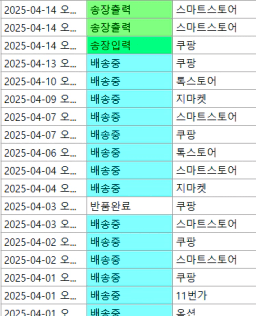 한주 동안 1건의 취소주문을 포함하여 10건의 주문이 들어왔고 배송처리까지 완료하였습니다.