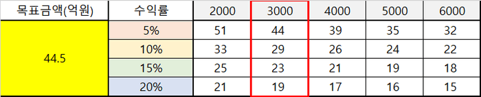 목표 금액 44.5억 (현재 나이 33세, 연저축액 3000만원)