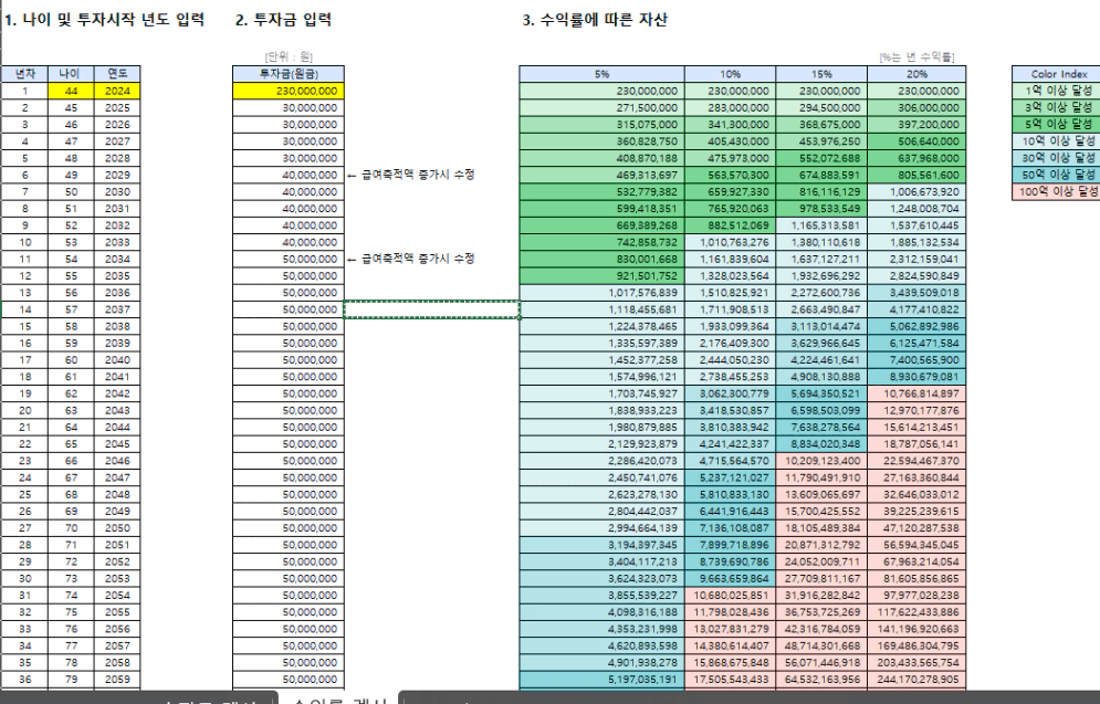 STEP4. 수익률에 따른 은퇴 가능 나이