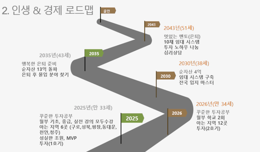 비전보드 실현을 위해 5년 단위로 20년 계획을 세워봅시다. (2025/ 2030/ 2035/ 2040/ 2045년)